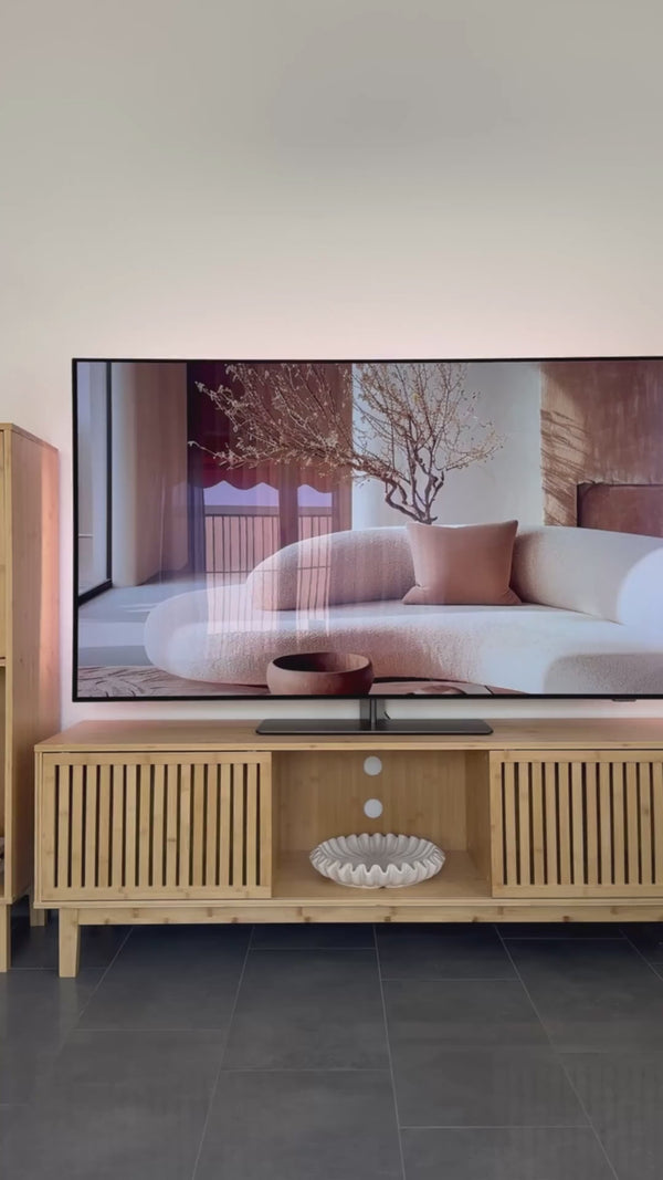 Vores tv-skab er nemt og ukompliceret at samle og er med sit moderne design og praktiske opbevaringsmuligheder en elegant tilføjelse til din stue eller dit underholdningshjørne.