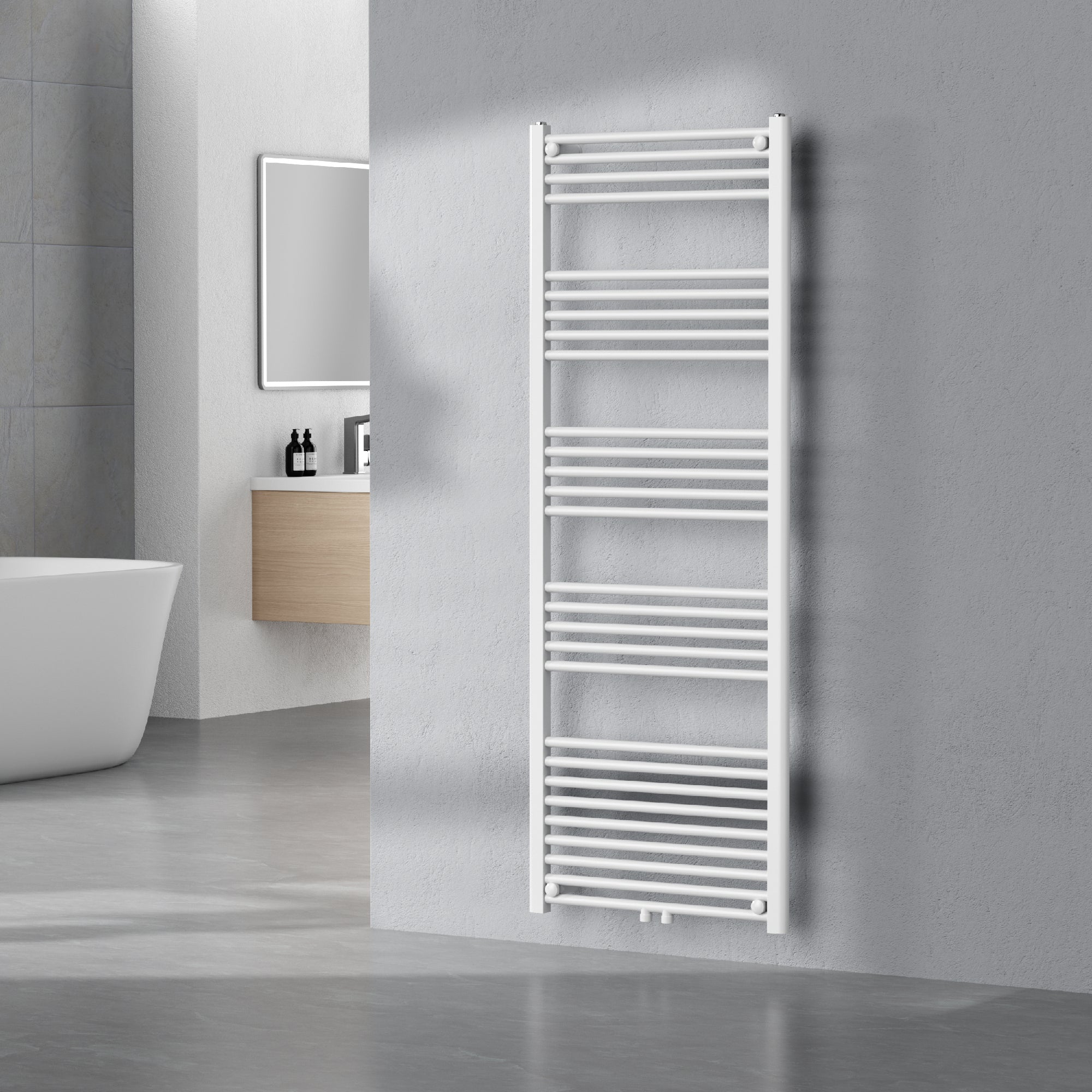 - Perfekt til at tørre dine håndklæder - Moderne og tidløst design til dit badeværelse - Pladsbesparende design optimerer udnyttelsen af pladsen - Hurtig og ukompliceret vægmontering med vedlagte instruktioner - Nem tilslutning til varmesystemet
