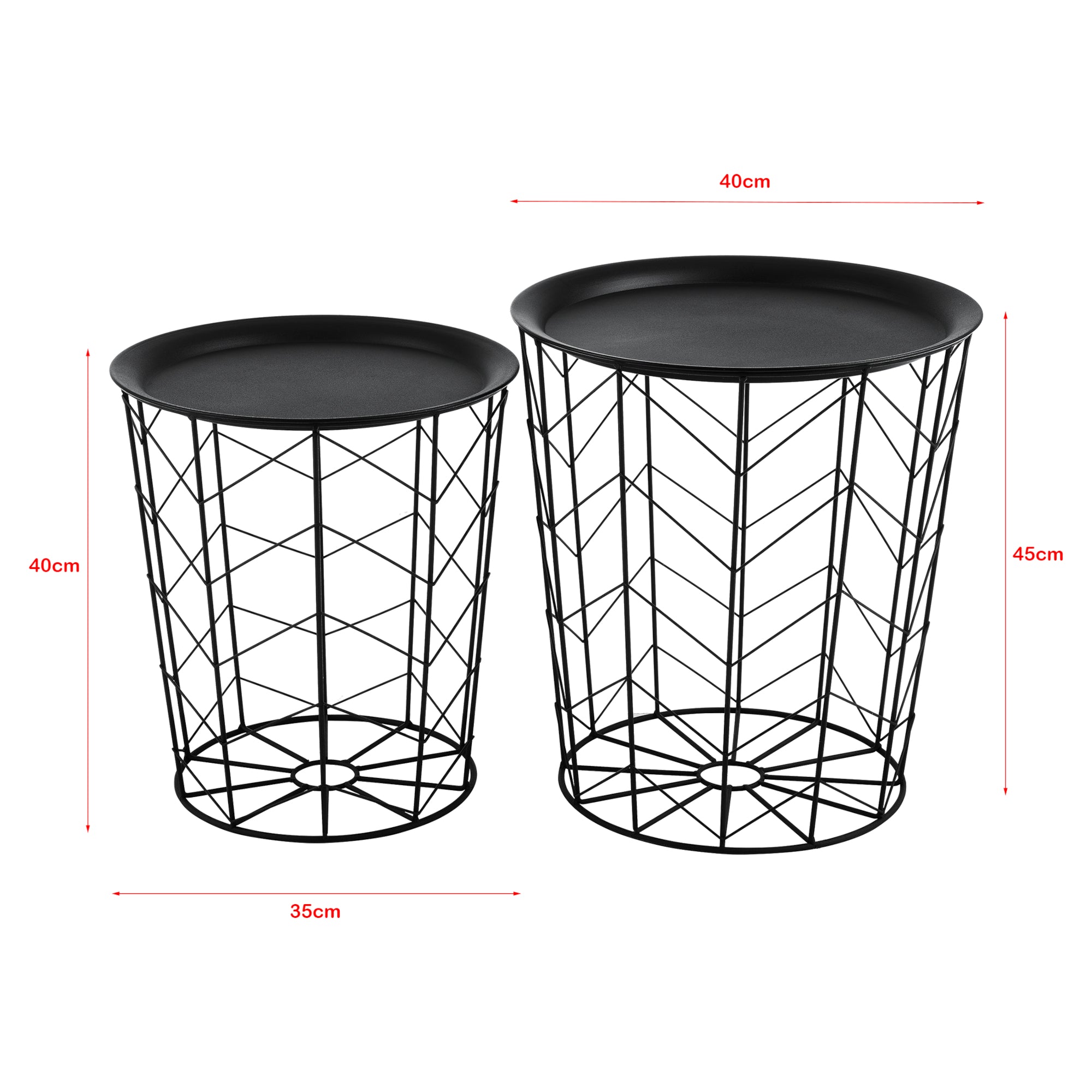 1 x metalkurvsæt (bestående af 2 kurve med aftagelige låg i forskellige størrelser)