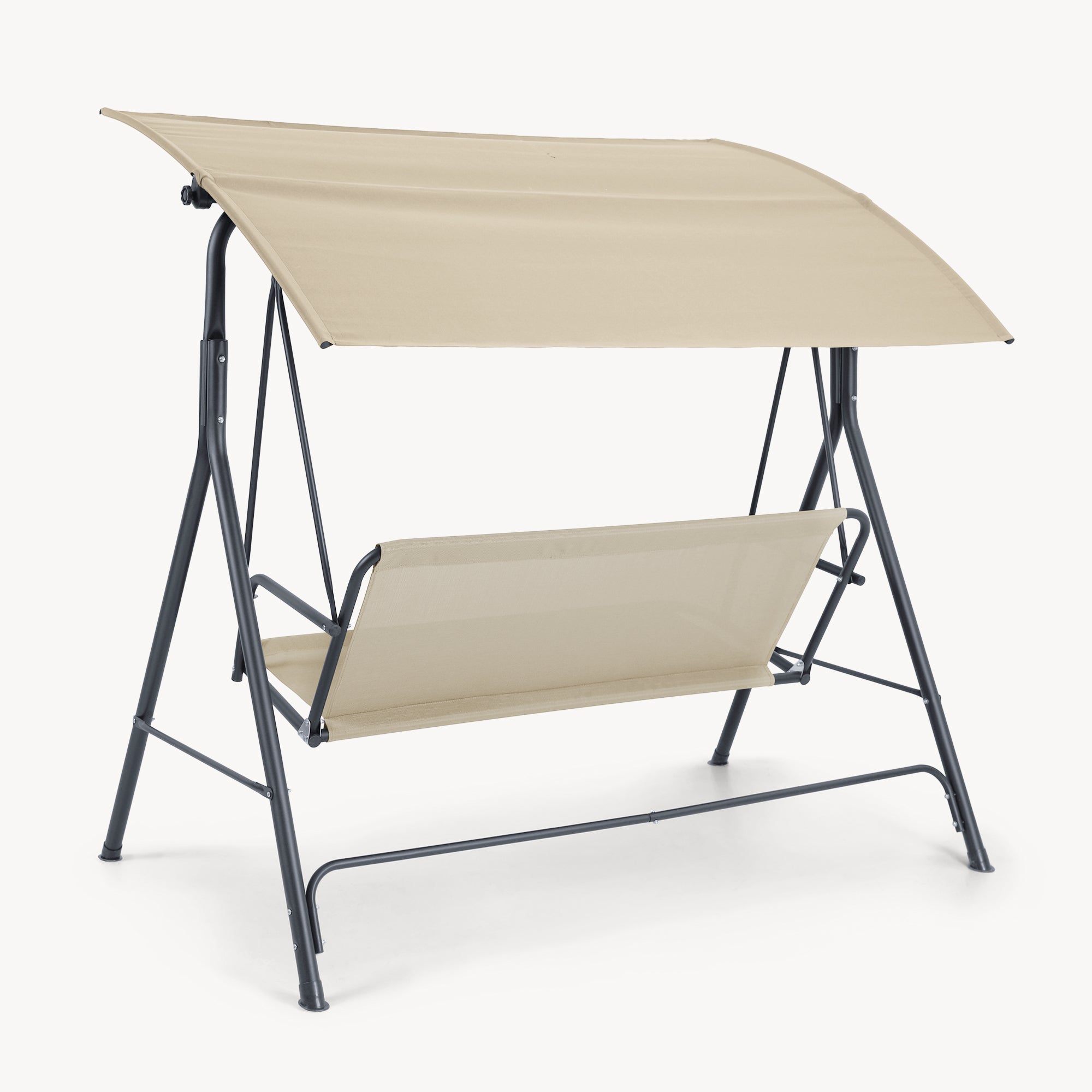 La hamaca con toldo SATTEN ofrece comodidad para hasta tres personas, ideal para disfrutar en el jardín, terraza o porche. Perfecta para leer, charlar o descansar al aire libre.