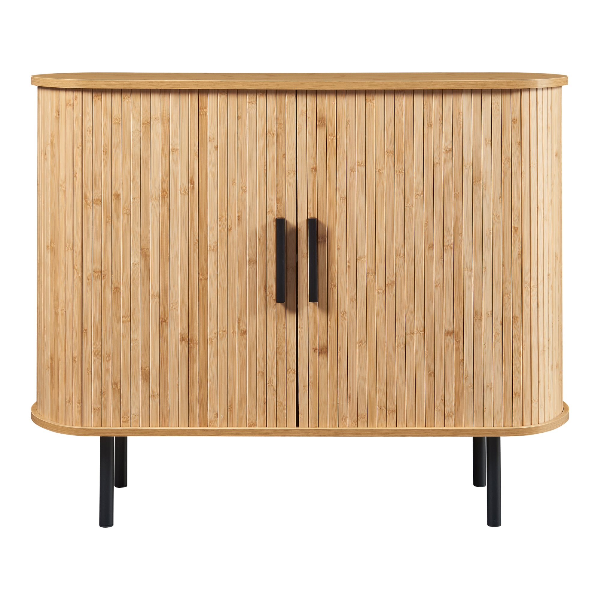 Diseñado con dos puertas correderas de listones verticales de bambú, este mueble de salón aporta calidez y serenidad a tu espacio. En su interior, cuenta con ocho compartimentos cerrados: dos pequeños para objetos delicados y seis grandes para artículos más voluminosos.