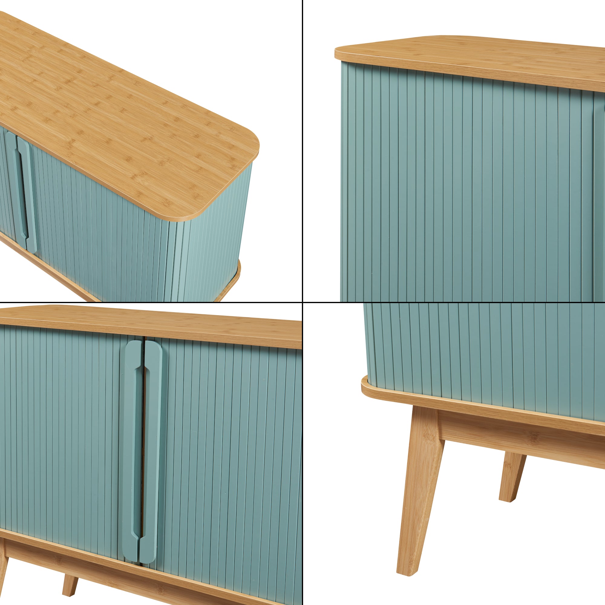 Skabet kan også fungere perfekt som skænk i stuen og er ideelt til opbevaring af bestik, tallerkener, glas, bøger og andre husholdningsartikler. De fire rummelige rum indeni giver dig mulighed for at skabe en struktureret organisation og holde alt inden for rækkevidde.