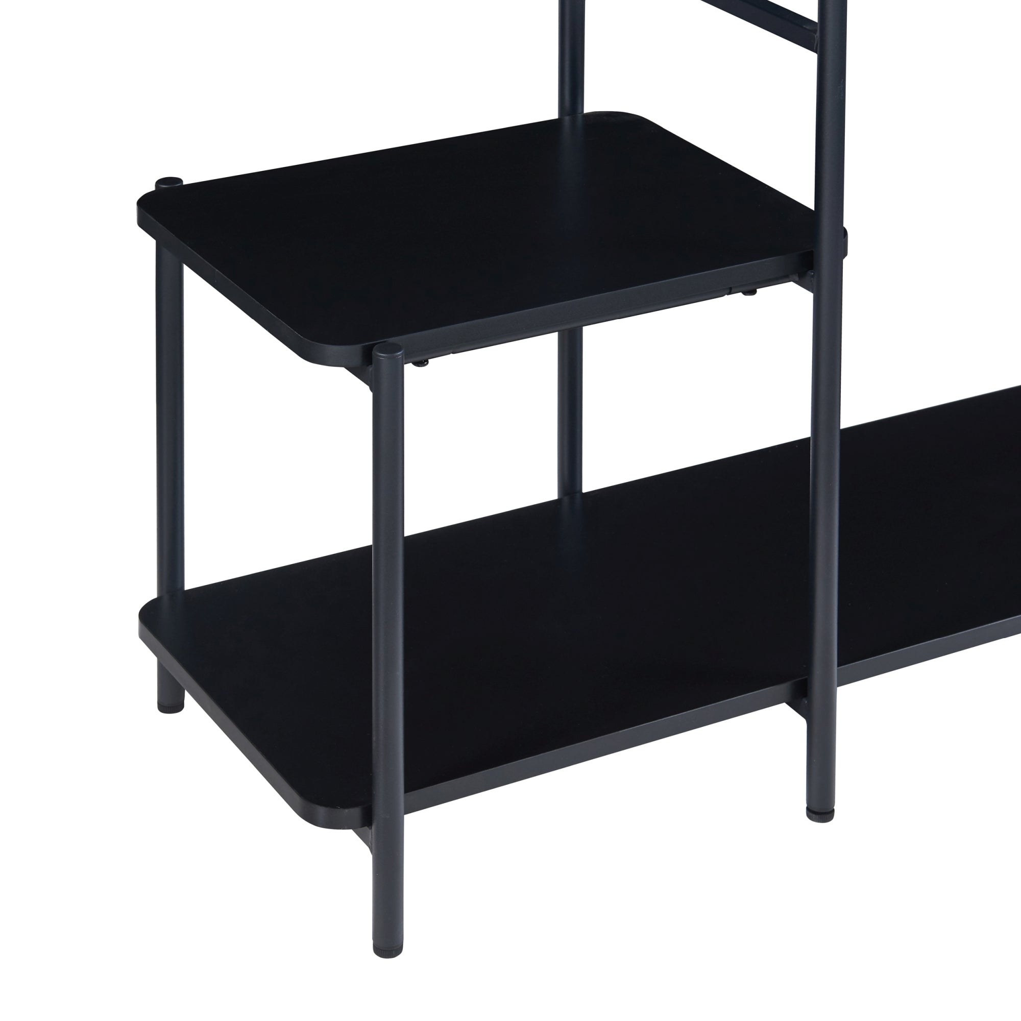 Den praktiske og stilfulde knagerække er hurtig og nem at samle. Den har to bøjlestænger, et stort opbevaringsområde til sko og en hylde i siden.