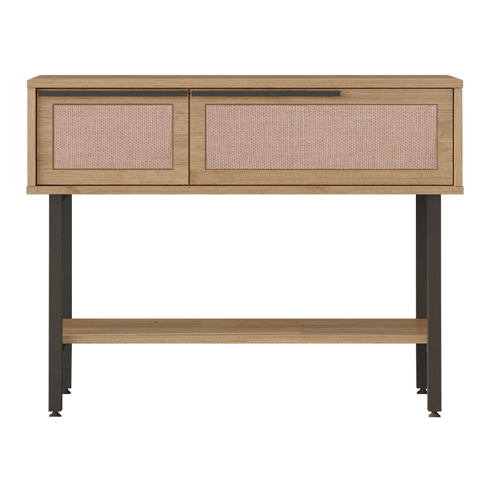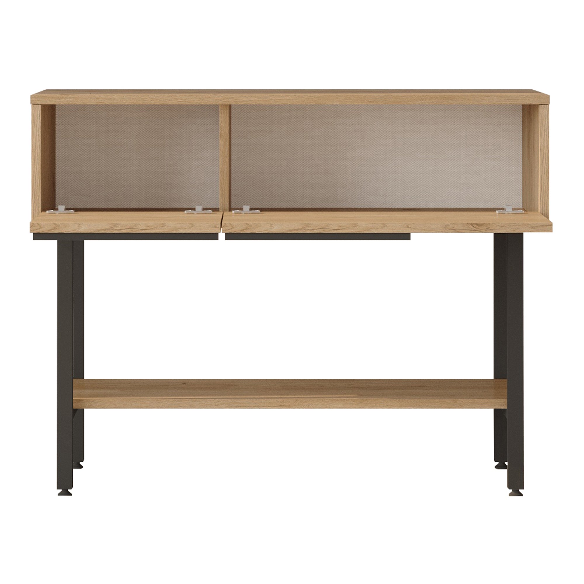Dette dekorative og praktiske konsolbord har en generøs bordplade og er perfekt til enhver husholdning. Den nederste hylde og to sammenklappelige rum giver ekstra opbevaringsplads.