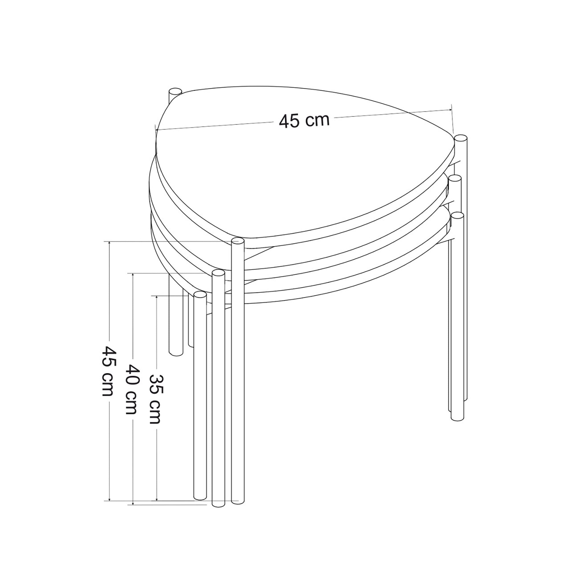 Disse usædvanlige sideborde er alsidige. Med deres tidløse design passer de perfekt ind i f.eks. din stue. Bordene kan opbevares sammen for at spare plads.