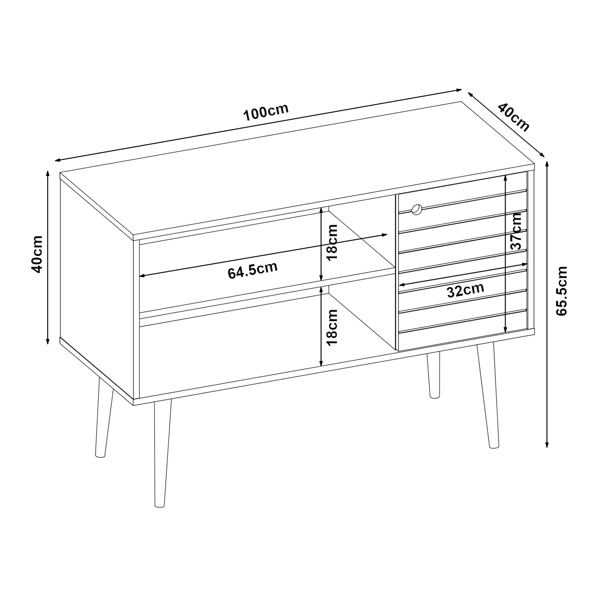 - I alt (LxBxH): 100 x 40 x 65,5 cm