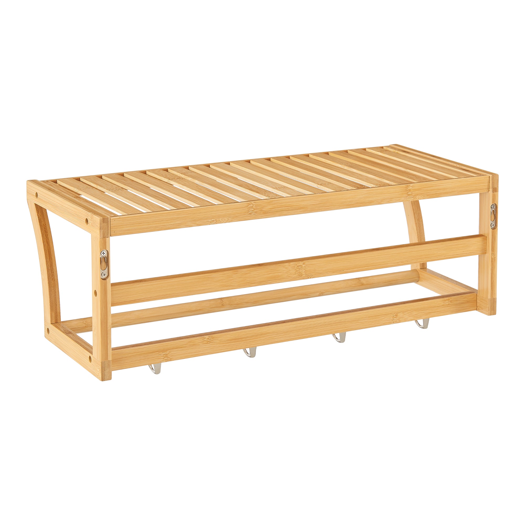 Derudover har den bæredygtige bambuskonstruktion fire kroge, hvor du kan hænge jakker, badekåber, viskestykker og mange andre ting. Det betyder, at du altid har dine vigtigste ting lige ved hånden.