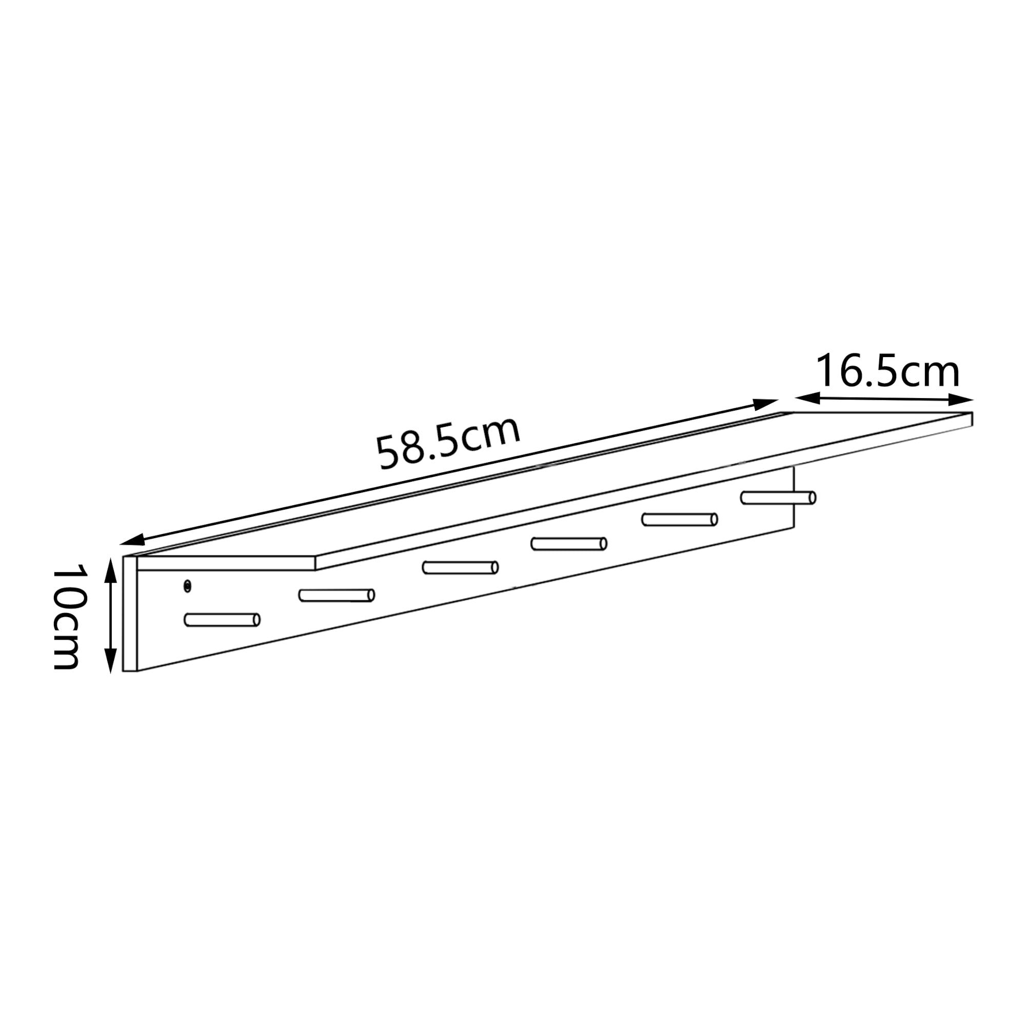 1 x vægknagerække med hylde inkl. monteringsmateriale